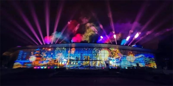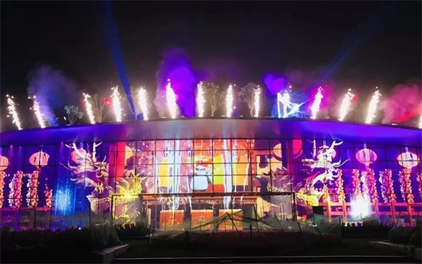 锐丰科技西南营销中心负责整个天府芙蓉园园区景观亮化泛光光影工程,采用建筑外立面泛光照明结合的照明手法进行照明设计,