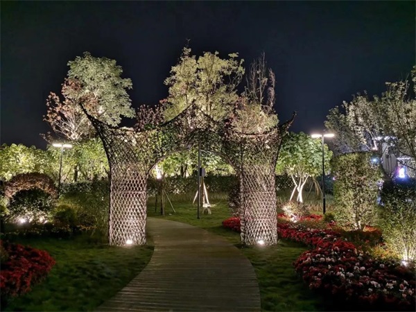 项目中技术团队采用多种声光电高科技产品运用,如:游客中心影装秀,蓝花楹大道步步生花光影秀互动,花岛RGB光影以及园区桥梁、河道、桉树林等等科技景观泛光照明,园区展现唯美意境,正如同人们置身仙境之中,动画影像之中。