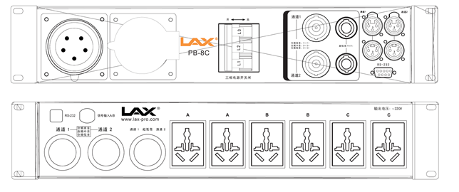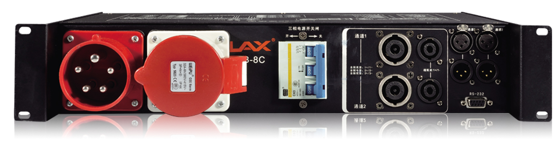 配备2个Neutrik八芯全频音箱及2个Neutrik四芯超低频音箱插座输出